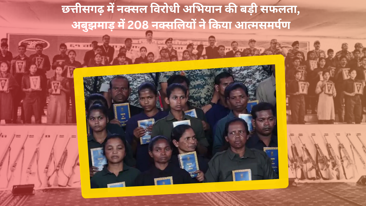 छत्तीसगढ़ में सुरक्षा बलों को नक्सल विरोधी अभियान के तहत एक बड़ी सफलता मिली है। राज्य के उत्तरी बस्तर क्षेत्र में स्थित अबुझमाड़ इलाके में 208 नक्सलियों ने मुख्यधारा में लौटते हुए पुलिस के सामने आत्मसमर्पण कर दिया। आत्मसमर्पण करने वालों में 110 महिलाएं और 98 पुरुष शामिल हैं। इन सभी नक्सलियों ने कुल 153 हथियार पुलिस के हवाले किए हैं। यह घटना राज्य में लंबे समय से जारी नक्सली हिंसा पर लगाम लगाने की दिशा में एक ऐतिहासिक उपलब्धि मानी जा रही है।