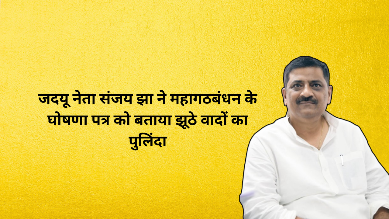 JDU के वरिष्ठ नेता और पूर्व मंत्री संजय झा ने महागठबंधन के घोषणा पत्र पर तीखा प्रहार करते हुए उसे जनता को भ्रमित करने वाला बताया है। उन्होंने कहा कि महागठबंधन का घोषणा पत्र केवल खोखले वादों से भरा हुआ है, जिसमें न तो बिहार के विकास की कोई ठोस योजना है और न ही जनता की वास्तविक समस्याओं का समाधान। झा ने कहा कि विपक्ष केवल चुनावी मौसम में बड़े-बड़े दावे करता है, जबकि सत्ता में रहते हुए उसने राज्य की प्रगति की दिशा में कोई ठोस कदम नहीं उठाया।