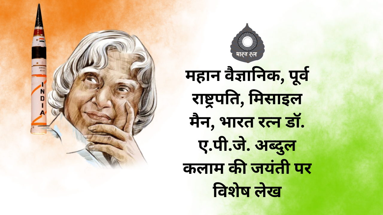 महान वैज्ञानिक, पूर्व राष्ट्रपति, मिसाइल मैन, भारत रत्न डॉ. ए.पी.जे. अब्दुल कलाम की जयंती पर विशेष लेख