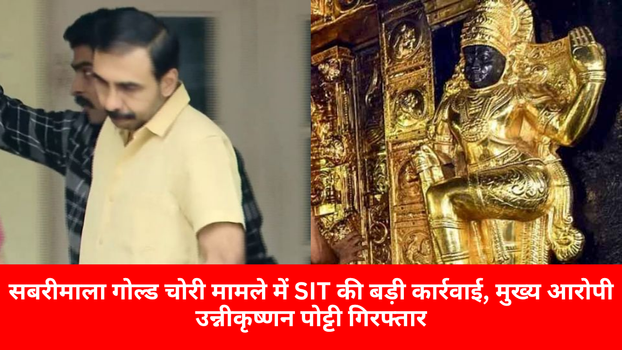 सबरीमाला मंदिर से जुड़ी बहुचर्चित गोल्ड चोरी मामले में केरल पुलिस की विशेष जांच टीम SIT को बड़ी सफलता मिली है। पुलिस ने इस मामले के मुख्य आरोपी उन्नीकृष्णन पोट्टी को शुक्रवार को गिरफ्तार कर लिया है। बताया जा रहा है कि आरोपी पिछले कई महीनों से फरार था और लगातार अपना ठिकाना बदल रहा था। पुलिस ने उसे लंबी निगरानी और गुप्त सूचना के आधार पर पकड़ने में सफलता हासिल की।