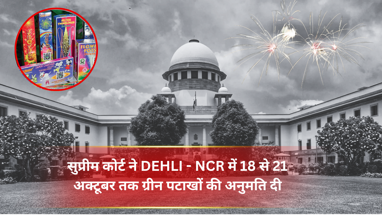 दिल्ली-एनसीआर के लोगों के लिए दिवाली से पहले सुप्रीम कोर्ट ने एक बड़ी राहत दी है। कोर्ट ने बुधवार को अपने आदेश में कहा कि दिल्ली, नोएडा, गाजियाबाद, गुरुग्राम और फरीदाबाद जैसे एनसीआर क्षेत्रों में 18 अक्टूबर से 21 अक्टूबर तक ग्रीन पटाखे पर्यावरण अनुकूल पटाखे फोड़ने की अनुमति होगी। यह अनुमति केवल निर्धारित समयसीमा और नियमों के तहत दी गई है ताकि प्रदूषण स्तर पर नियंत्रण रखा जा सके।